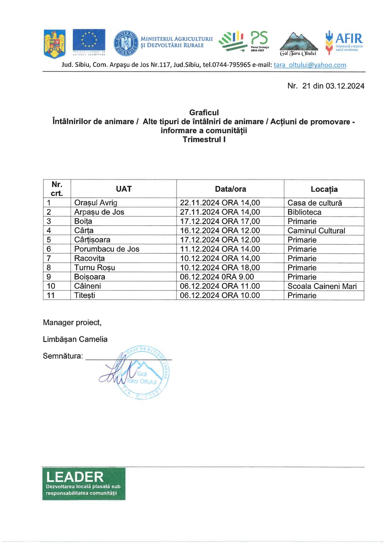 GAL TARA OLTULUI CALENDAR ACT INFORMARE DR36 TRIMESTRU 1